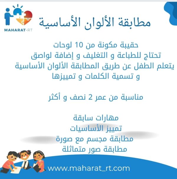 حقيبة مكونة من 18 لوحة للألوان الأساسية تستخدم عن طريق المطابقة لتساعد طفلك في تنمية مهارة المطابقة للألوان و تمييز الأشياء الأساسية و تسميتها