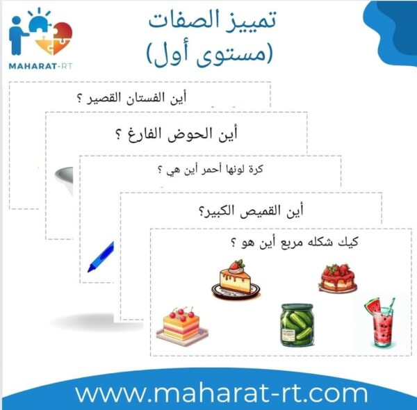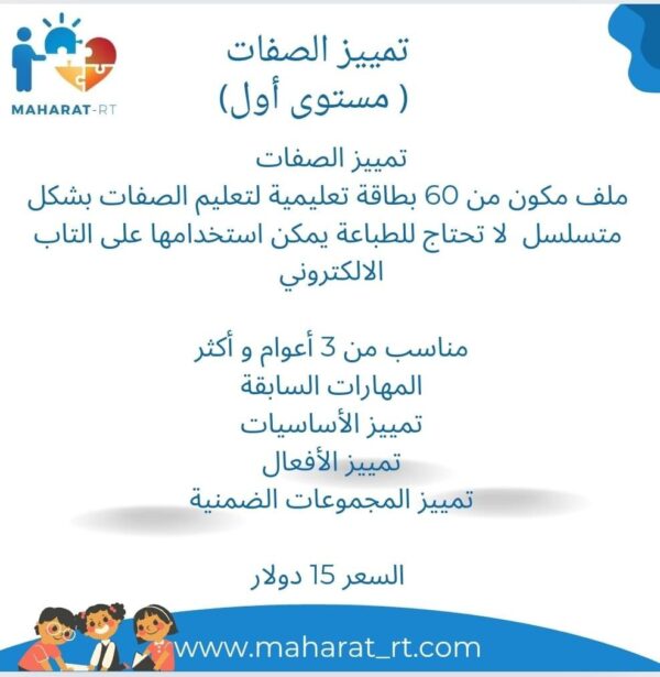 ملف مكون من 60 بطاقة تعليمية لتعليم الصفات بشكل متسلسل لا تحتاج للطباعة يمكن استخدامها على التاب الالكتروني.