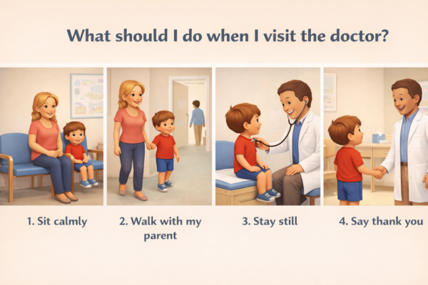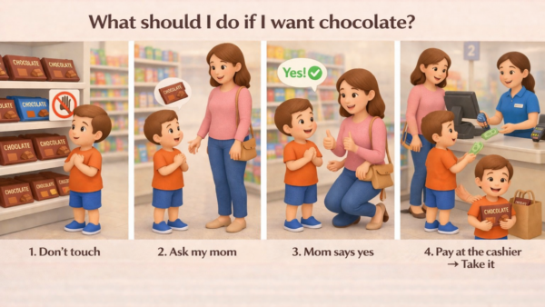 مجموعة مكوّنة من 40 بطاقة تعليمية مصممة بطريقة بصرية بسيطة وجذابة لمساعدة الأطفال على تعلم المهارات الاجتماعية والسلوك الصحيح في المواقف اليومية.